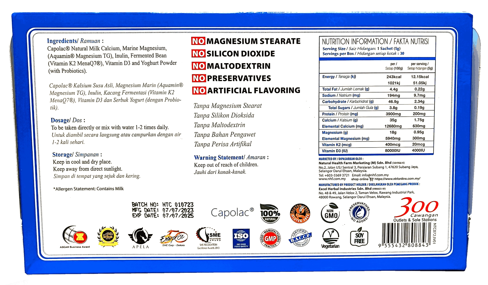 Bahan tambahan: Serbuk inulin (prebiotik semula jadi), maltodekstrin, dan bahan anti-penggumpal semulajadi. |